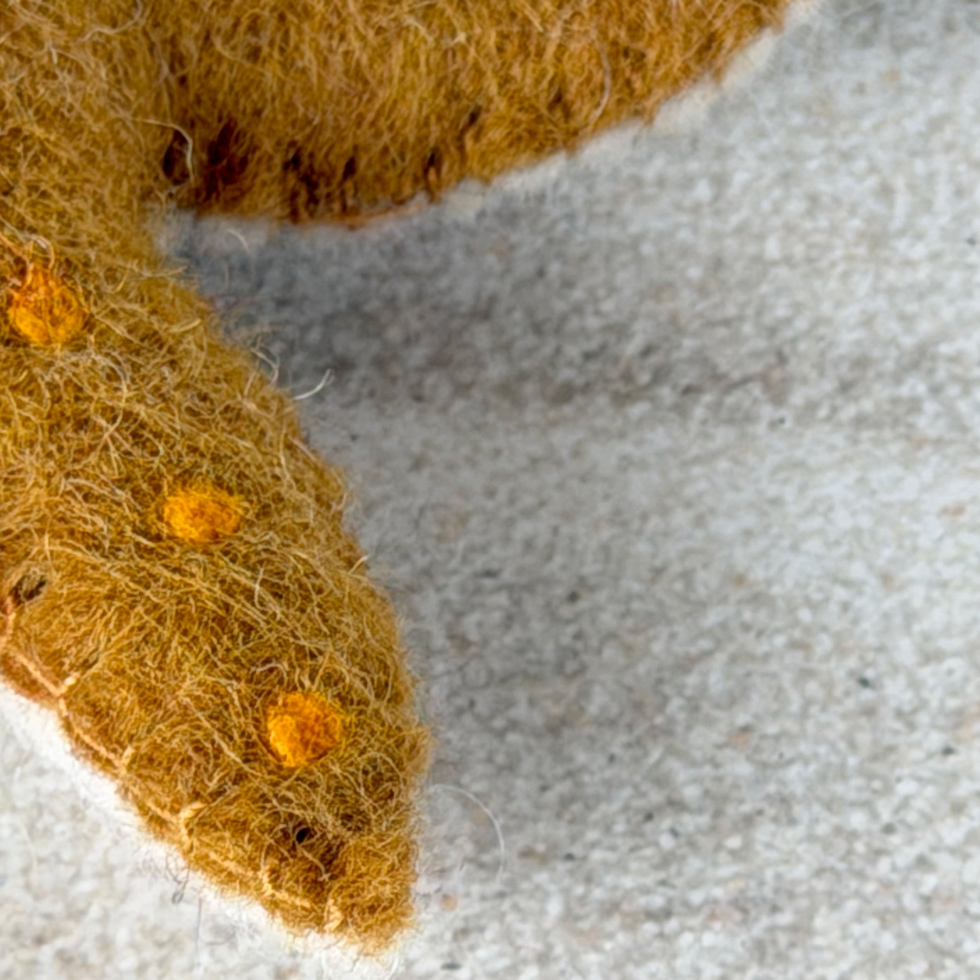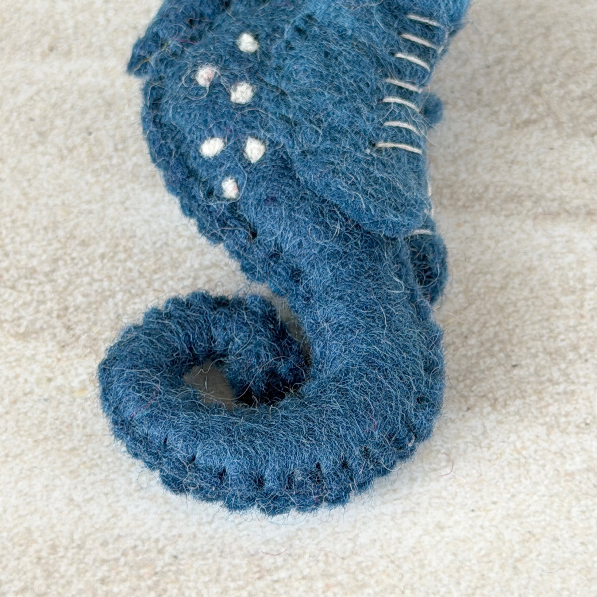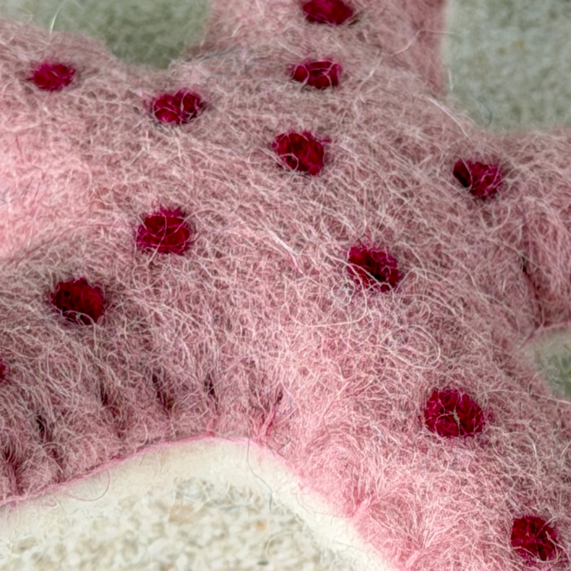 手作りの工芸品ですので、形や色が均一ではありません。また天然素材ならではの特徴として、黒い斑点や、染色前の白や黒の羊毛が混ざることがあります。遠くカトマンズの職人たちが込めた手仕事の温もりを、その個性とともにお楽しみいただける方におすすめします。
