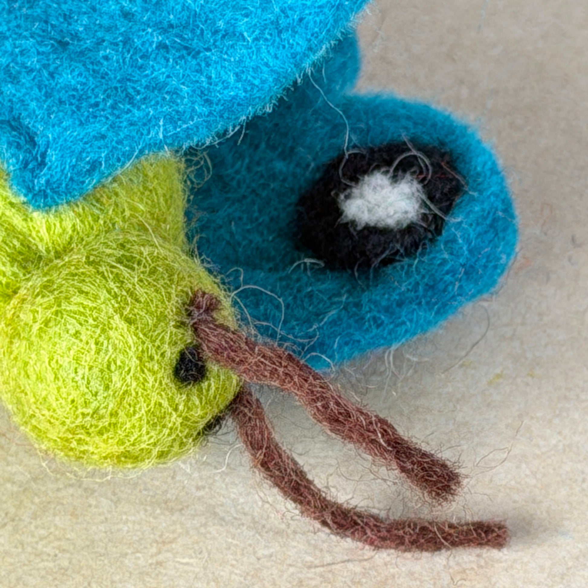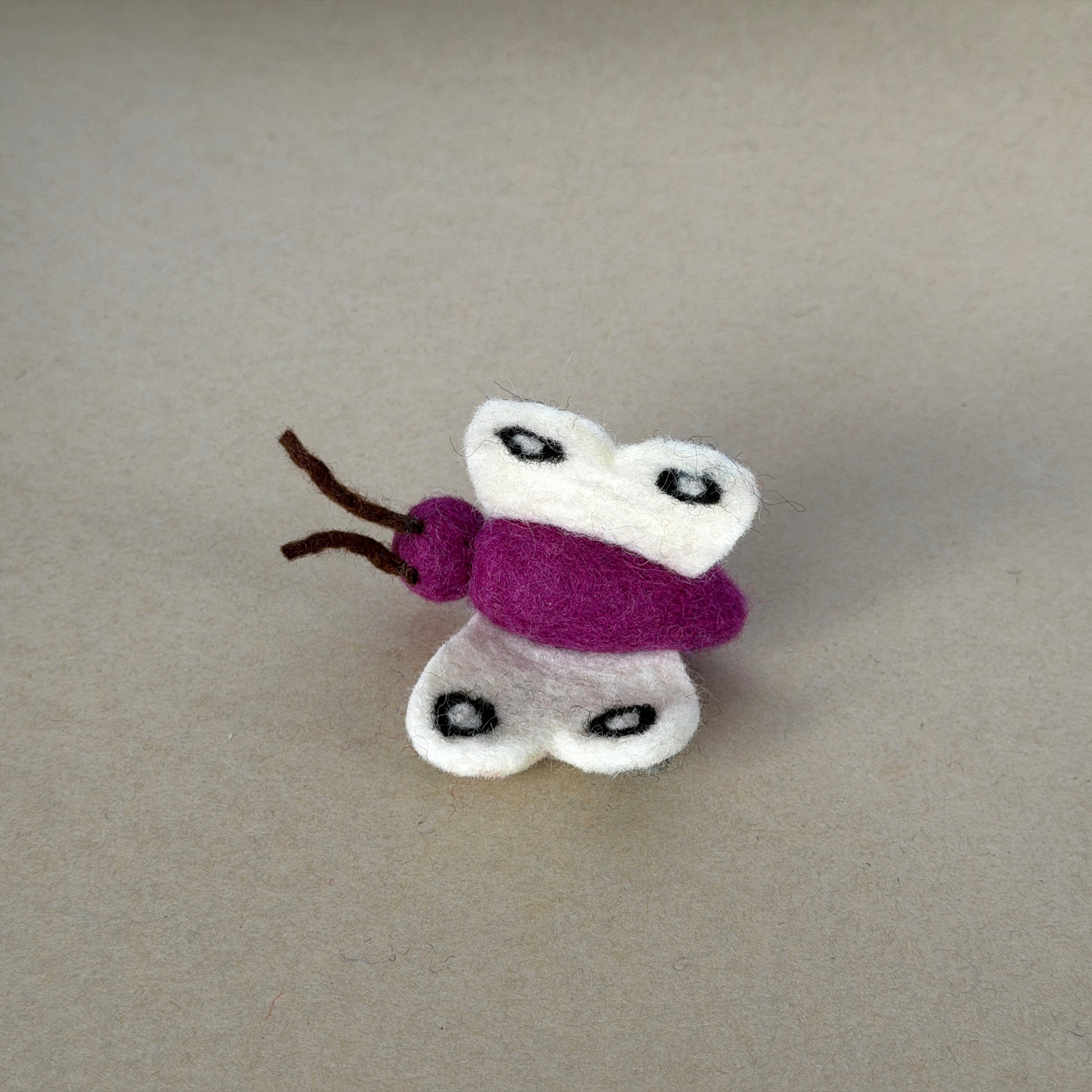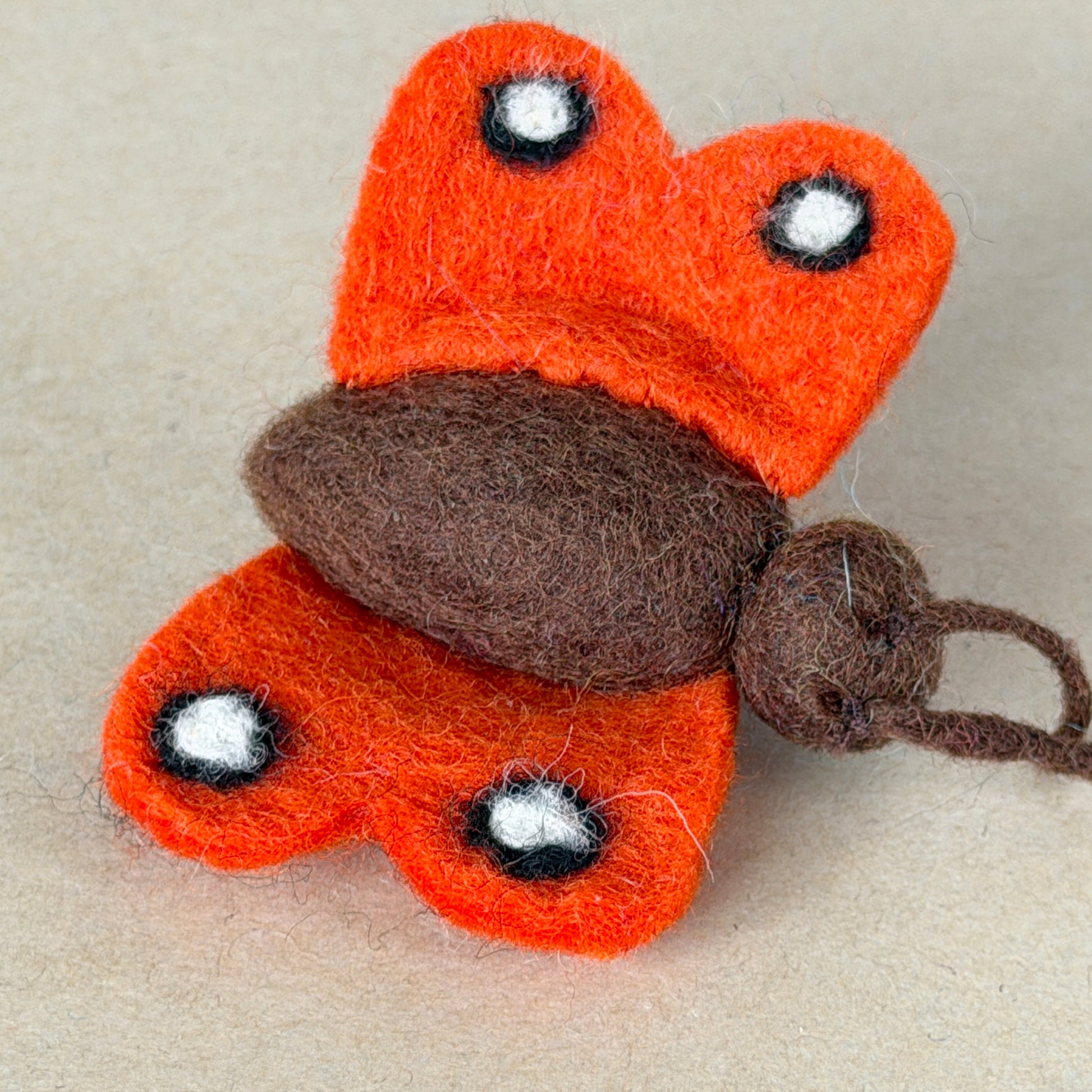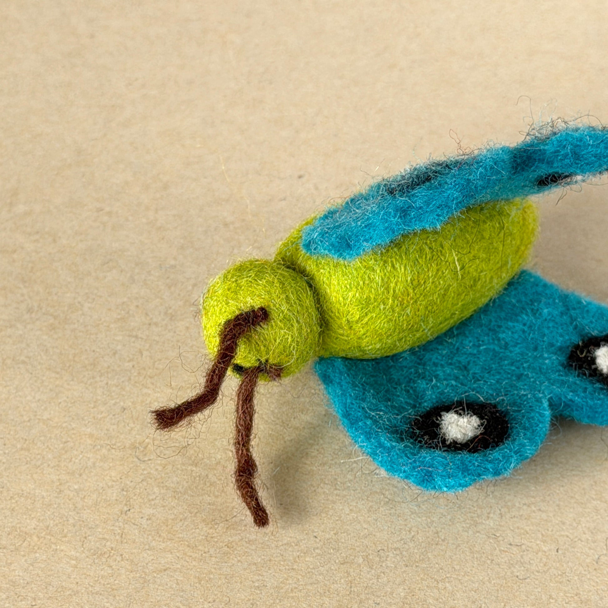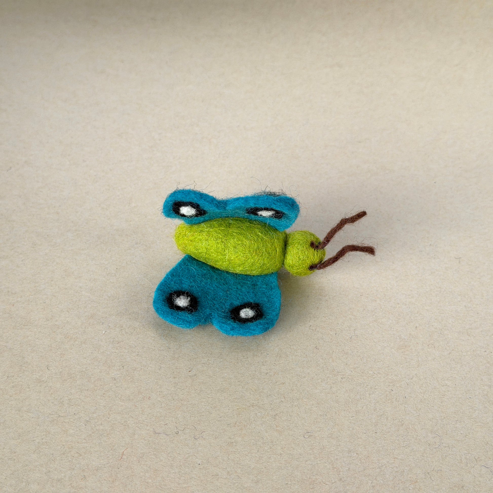 ひらり舞う立体的なちょうちょ。羽は折りたたみスタイルで縫い付けられているので、写真のような広がった状態には自然にはなりません。でもそれが逆に、狩りやすさの秘密。羽を噛んでお散歩も楽々です。青虫時代とのビフォアアフターセットもあります。