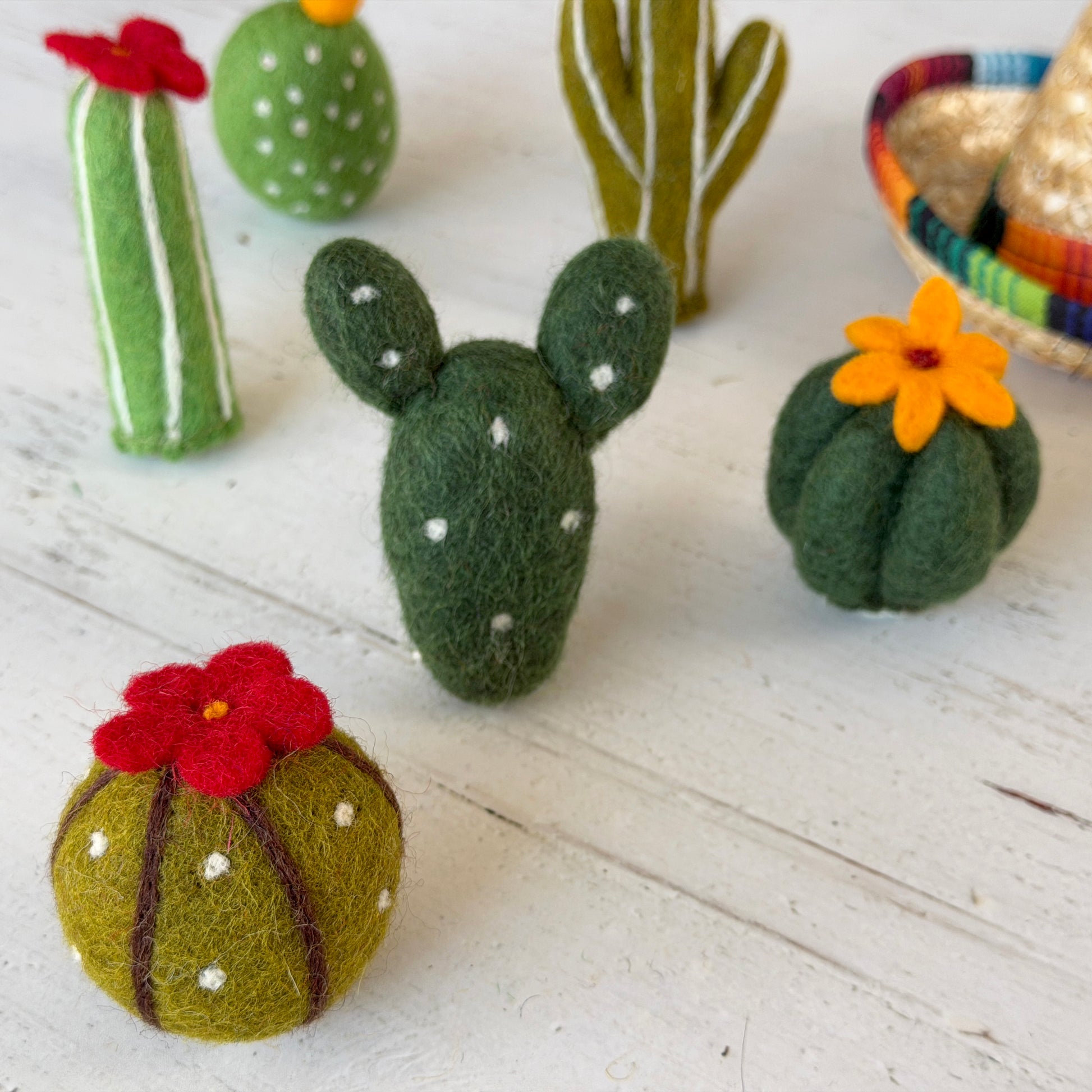 砂漠からやってきた、6種のトゲなしサボテンコレクション。それぞれ違った形と模様で、見ているだけでも楽しいアイテム。底面は丸みを帯びているので、寝そべりタイプです(撮影時のみ立っています)。どのサボテンで遊ぶかは、ねこのお気持ち次第。おしゃれなカゴに並べれば、メキシカンテイストな空間に。花やボディの色味は写真と違うことも。お手軽なサボテン2個セットもあります。
