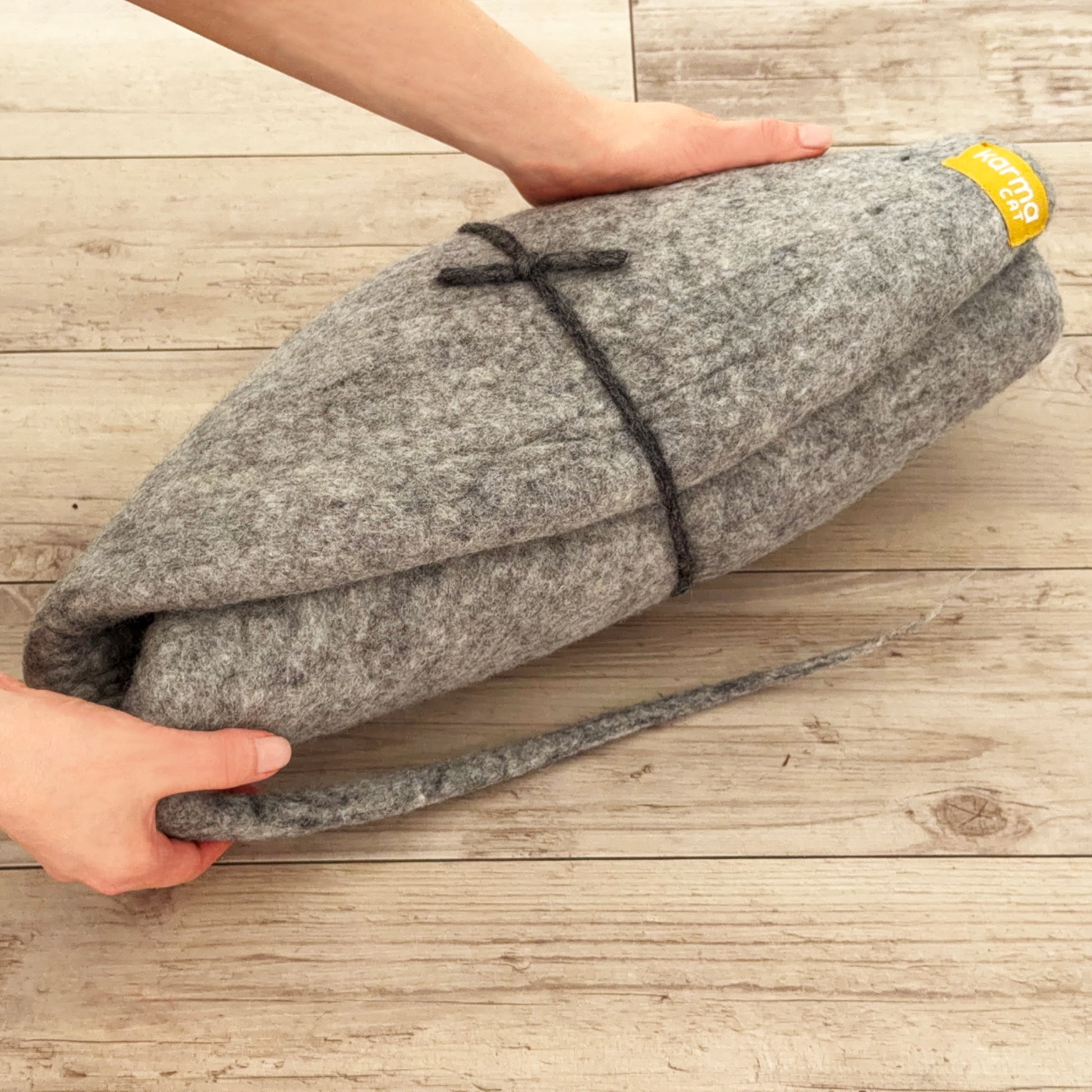 Karma Cat は、ヒマラヤとニュージーランドの厳選羊毛をブレンドした、ウールフェルト100%のねこのためのおもちゃブランドです。一般的なおもちゃでは中綿にポリエステルを使用することが多い中、Karma Cat の商品は中まで全てフェルト。ネパールの熟練職人がひとつずつ、丁寧に手作りしています。