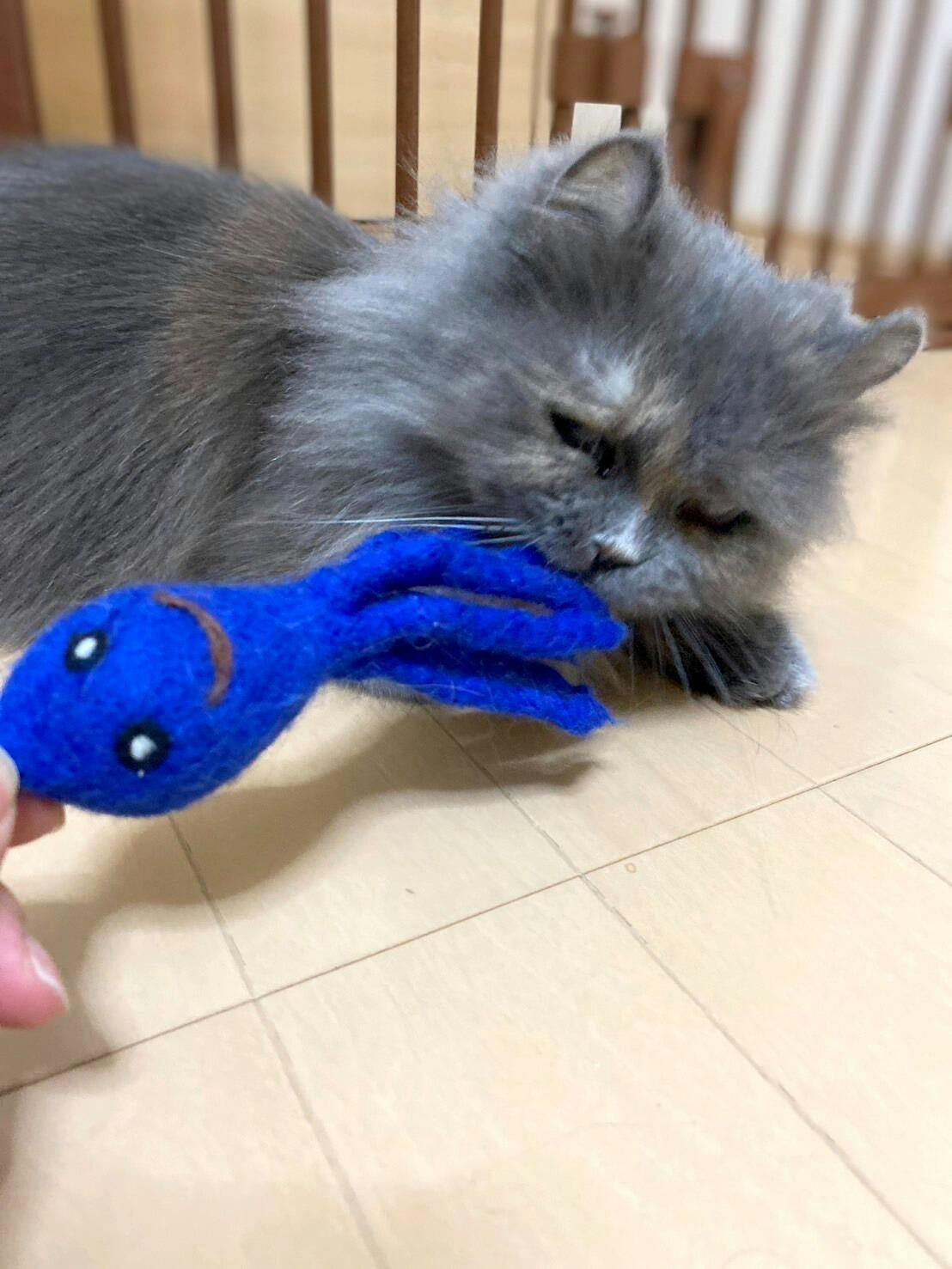 フェルトならではのしっかりとした作りは、ふわふわとした手触りはありませんが、ねこの大はしゃぎにも耐える丈夫さが魅力。噛みごたえも蹴りごたえも抜群と、店長からのお墨付きです。